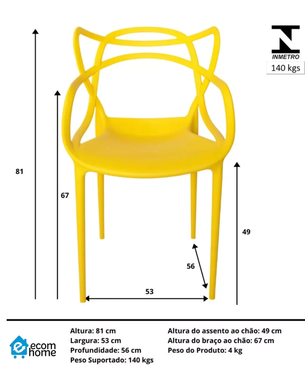 A Cadeira Allegra da Ecom Home é uma combinação perfeita de design moderno e resistência. Ideal para salas de jantar, cozinhas, varandas, espaços gourmet, restaurantes e lanchonetes, oferece sofisticação sem abrir mão da funcionalidade. Produzida em polipropileno injetado de alta qualidade, essa cadeira é leve, robusta e extremamente durável, suportando até 140 kg.