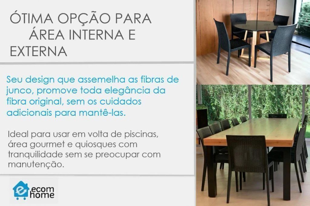 Transforme seus ambientes com a Cadeira Rattan da EcomHome, uma peça que combina elegância, funcionalidade e resistência. Seja para uso residencial ou comercial, essa cadeira é perfeita para quem busca praticidade com um toque sofisticado.