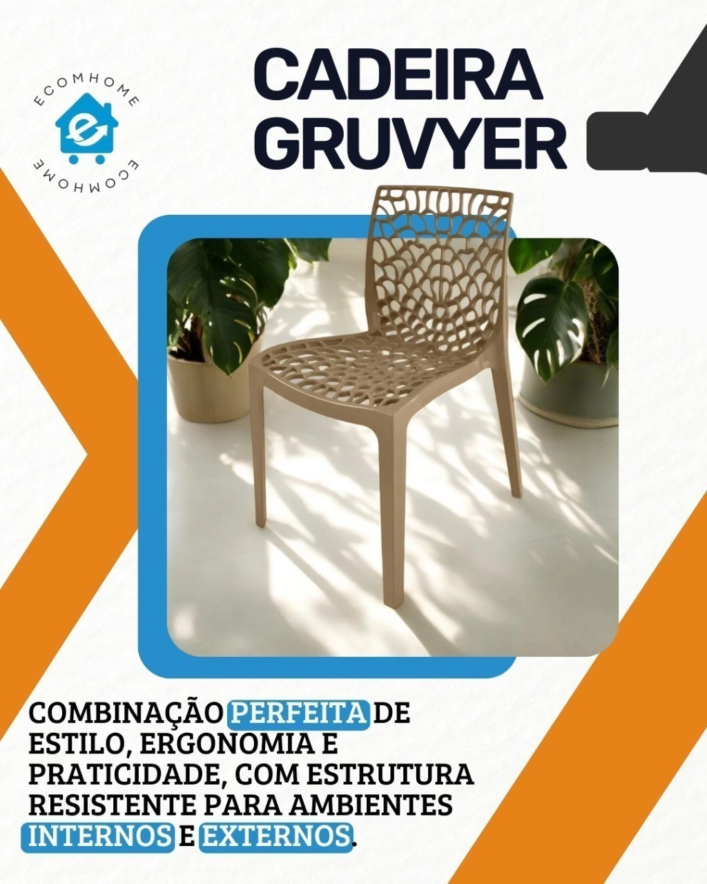 A Cadeira Gruvyer da EcomHome é a escolha ideal para quem busca um móvel versátil, resistente e com um design inovador. Transforme seu ambiente com um toque de modernidade e elegância.